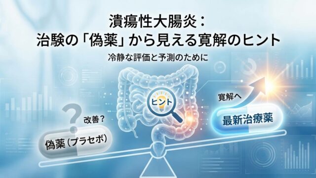 潰瘍性大腸炎(UC)の最新治療薬の治験結果を見る際、「なぜ偽薬(プラセボ)を飲んだグループでも症状が改善する人がいるのか?」という疑問を持たれる患者さんは少なくありません。このたび、無作為化比較試験(RCT)におけるUC患者のプラセボ反応率...