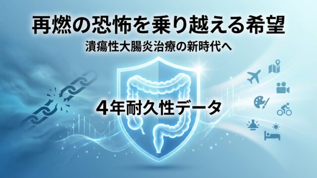 潰瘍性大腸炎(UC)の治療は近年大きく進歩していますが、患者さんが抱える最大の不安の一つは、「今の治療効果がいつまで続くのか」という点です。症状が改善(寛解)しても、またいつ再燃するかわからないという恐怖は、日常生活や仕事、旅行の計画を立て...