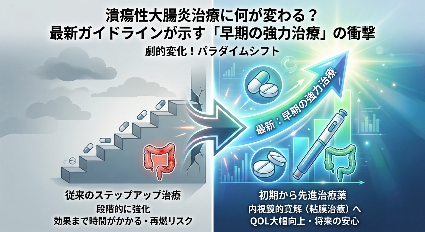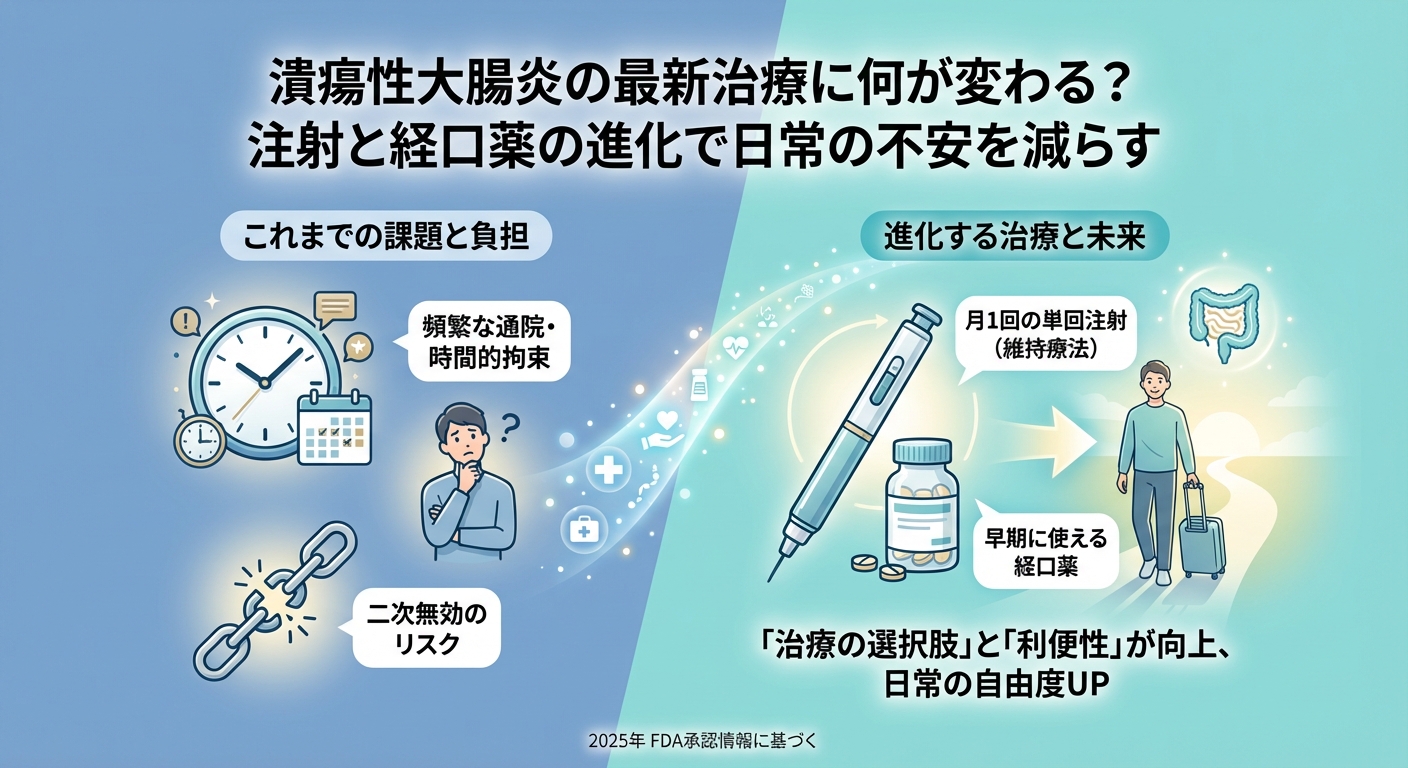 この最新研究は、潰瘍性大腸炎(UC)の治療が「薬を続けること」と「薬を辞めること」の両方に科学的な根拠を与え、「長期的な生活の質(QOL)の確保」を目指す段階に入ったことを示しています。